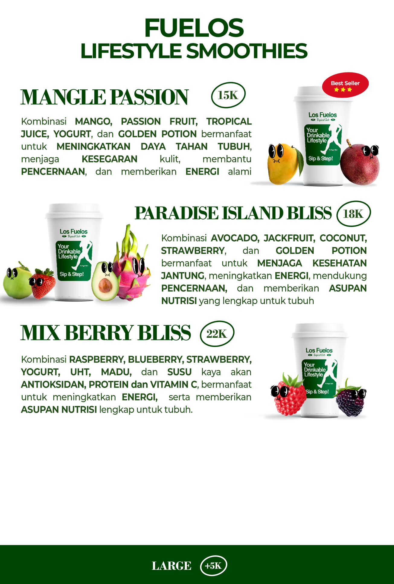 Kami membuat Smoothie & Juicery Bar bagi teman-teman yang ingin mengisi "Bahan Bakar" setelah melakukan aktivitas berolahraga